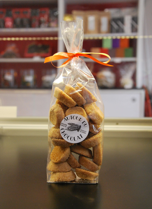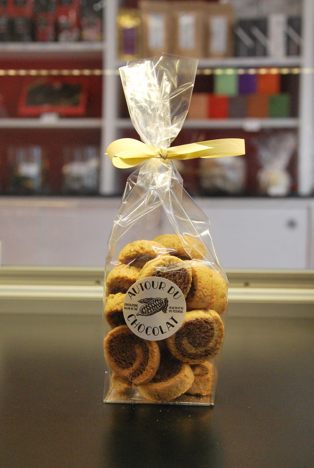 • Les Tourbillons Chocolat sont des sablés croquants et savoureux. Ils sont réalisés pur beurre, parfumés au chocolat, et toujours rehaussés d'une pointe de sel de Guérande