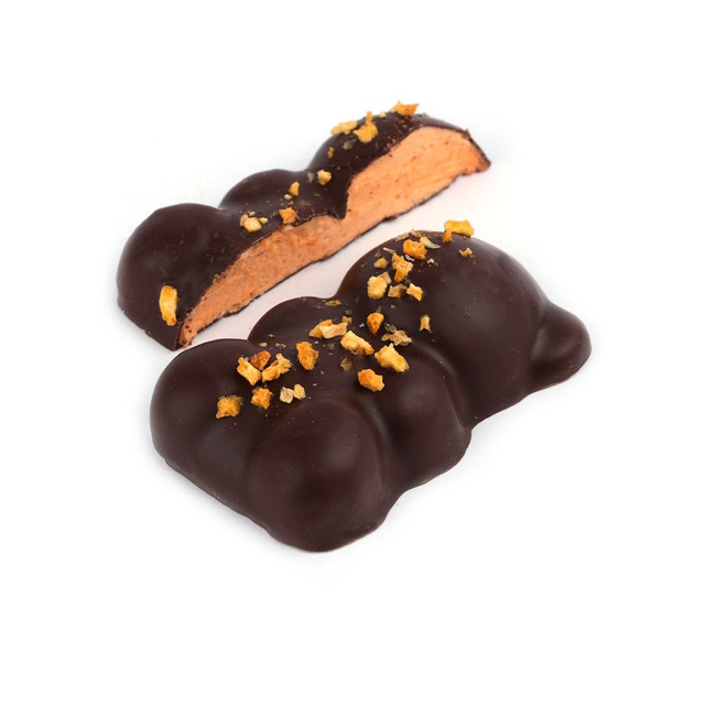 Découvrez nos OURS GUIMAUVE à l'orange de la Maison JEANBLANC. Une guimauve fondante enrobée d'un délicieux chocolat noir
